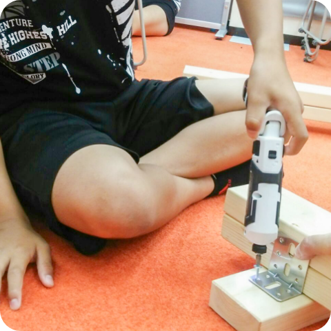 ご家庭だけでは経験しにくい電動工具やコンピュータ、楽器なども積極的に活用し、療育プログラムに取り入れています。