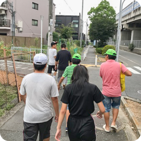 元気にカラダを動かして、 地域の方とおしゃべりをして。 お出かけはみんな大好きです。